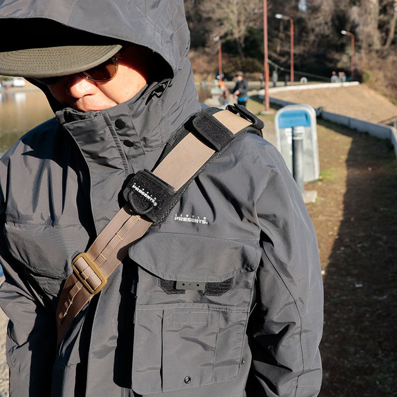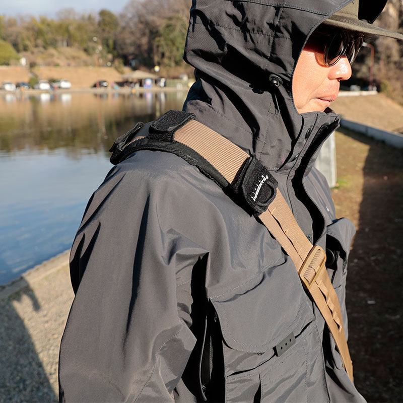 ・知らず知らずのうちに釣り師のバッグはルアーボックスやフライボックス、その他でふくれあがってしまうもの。これを装着すれば肩への負担を軽減させて、より快適に釣りに集中できます。
